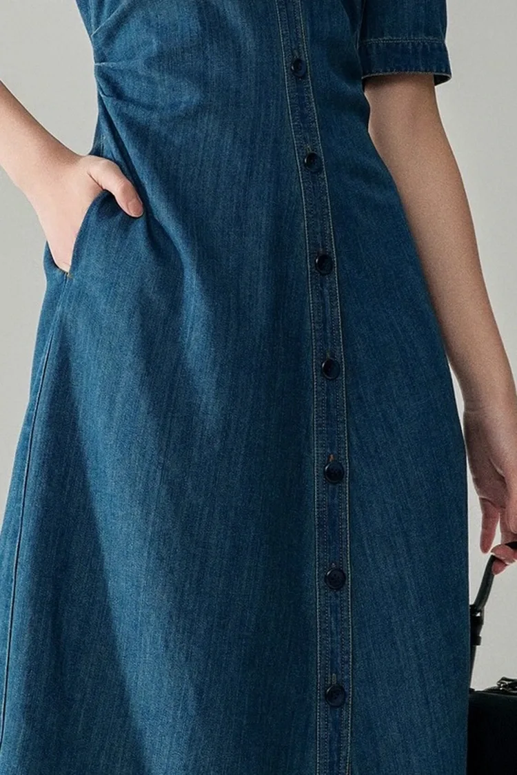 Per soddisfare le esigenze principali degli acquisti all'ingrosso, l'abito di classe in cotone jeans da donna tiene conto nel suo design dell'adattabilità alle diverse forme del corpo. È particolarmente favorevole alle figure a forma di pera, che possono ampliare significativamente il pubblico target delle vendite e aumentare il tasso di reso degli acquisti. La linea di cintura invisibile nella parte posteriore della vita è la caratteristica principale del design di questo prodotto. Non richiede un forte serraggio del punto vita, ma può ingegnosamente delineare il punto vita, evitando l'ingombro della silhouette dritta, evidenziando le curve del corpo e garantendo allo stesso tempo comfort durante l'indosso. L'orlo della gonna adotta una silhouette a forma di A che cade naturalmente dalla vita ai fianchi, che può coprire perfettamente il grasso in eccesso sui fianchi e sulle gambe, minimizzare i difetti della figura e donare una consistenza morbida e fluida quando si cammina. È allo stesso tempo elegante e grandioso e non limita i movimenti. Le maniche lunghe sono adatte alle stagioni primaverili e autunnali e possono essere indossate da sole o come strato interno, esaltando ulteriormente il valore pratico del prodotto e soddisfacendo le diverse esigenze di vestiario dei consumatori finali.