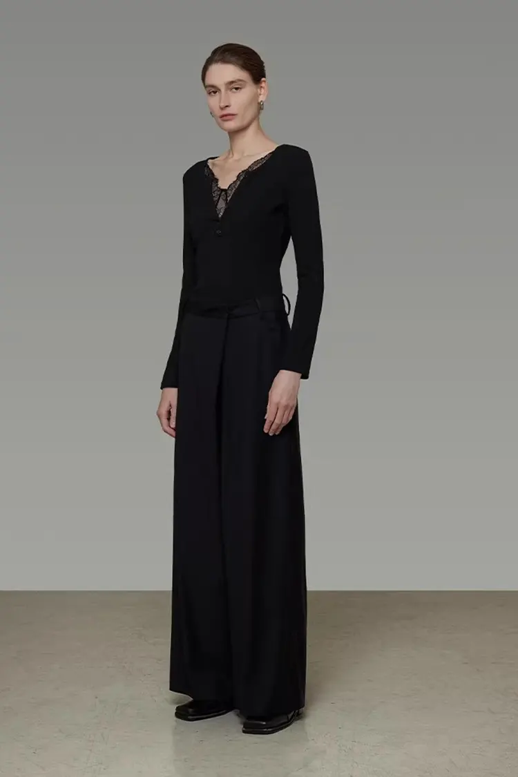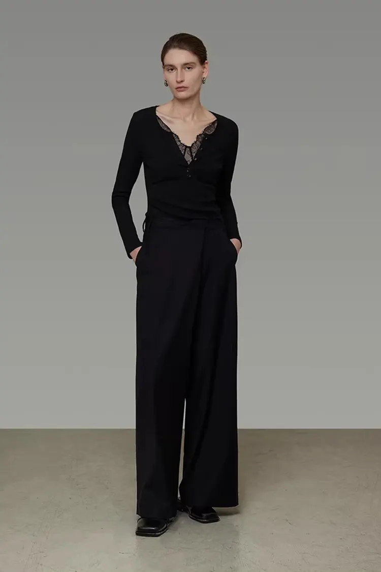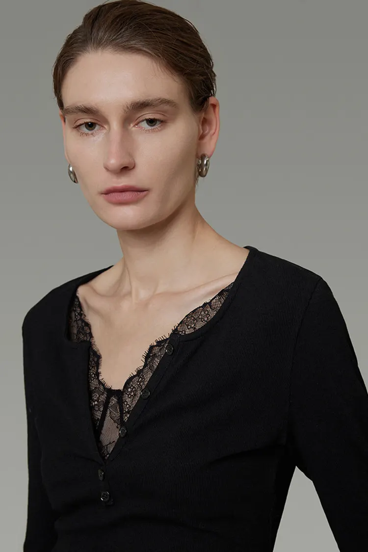 Il colore principale del maglione slim con scollo a V in pizzo da donna è il classico nero. È alla moda, versatile e senza tempo e ha un forte effetto snellente visivo, permettendoti di presentare senza sforzo una figura ordinata e snella. Il nero non dipende dal tono della pelle o dallo stile e ha un'accettazione terminale estremamente elevata. Allo stesso tempo, supporta la personalizzazione a colori e può essere regolato in modo flessibile in base ai requisiti del marchio e alle preferenze del mercato.